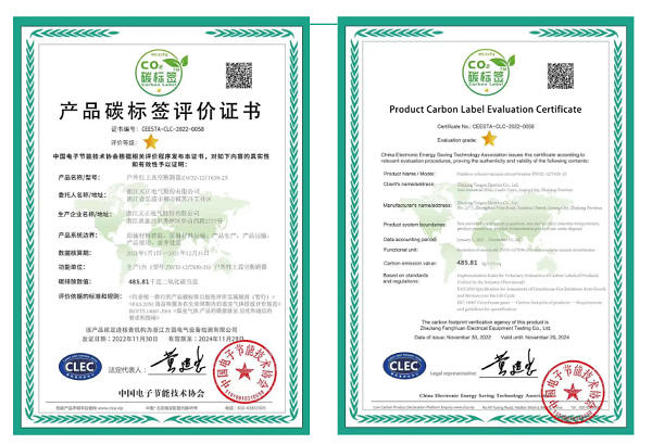 此次碳标签评价表明,NG28娱乐电气生产的户外柱上真空断路产品,在碳排放大数据方面按国际通行惯例推进,并具备一定的优势,对促进产品全供应链的温室气体减排,达成“双碳”目标具有积极作用。此外,NG28娱乐还获中国电子节能技术协会颁发的低碳产品供应商证书。